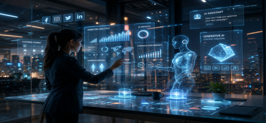 O futuro da Inteligência Artificial no marketing aponta para uma maior integração entre tecnologia e criatividade. À medida que as ferramentas evoluem, espera-se que a IA desempenhe um papel ainda mais relevante na criação de conteúdos, na automatização de decisões e na construção de relações com os consumidores.