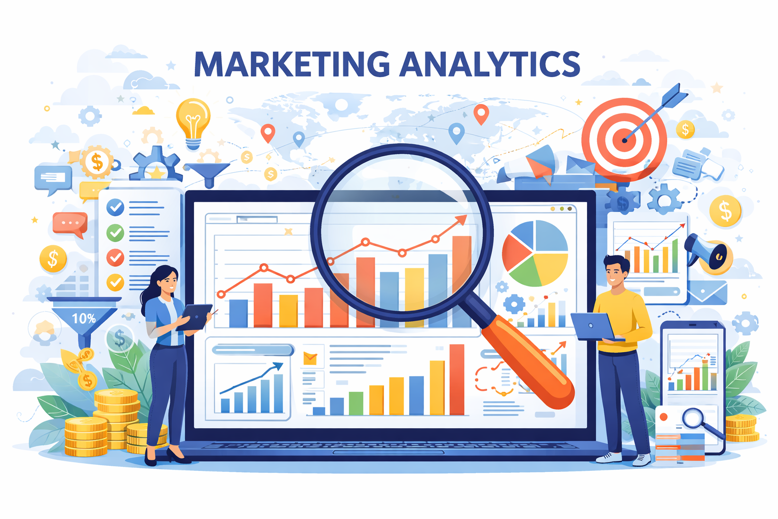 O Marketing Analytics é o conjunto de processos e tecnologias usados para medir, gerenciar e analisar o desempenho das iniciativas de marketing, coletando dados de fontes como sites, redes sociais e CRM para extrair insights acionáveis. Sua importância reside na capacidade de melhorar o ROI, otimizar campanhas e personalizar experiências do cliente, em um mercado onde o volume de dados cresce exponencialmente.