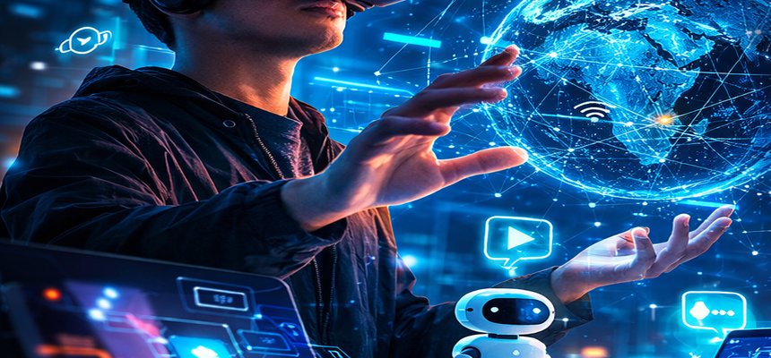 Fonte: ChatGPT. (2026). Interação digital e tecnologia imersiva [Imagem gerada por inteligência artificial]. OpenAI.