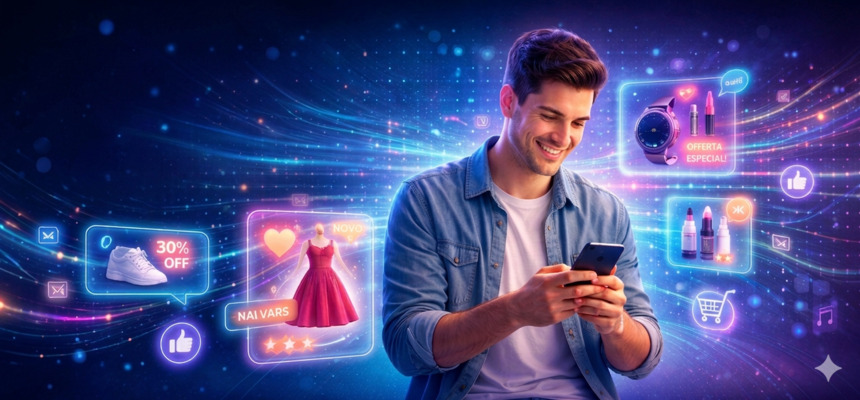 Nas redes sociais, o funcionamento é semelhante. O conteúdo apresentado no feed é selecionado com base nas preferências e comportamentos do utilizador. Como resultado, cada pessoa tem uma experiência personalizada, ajustada aos seus interesses.