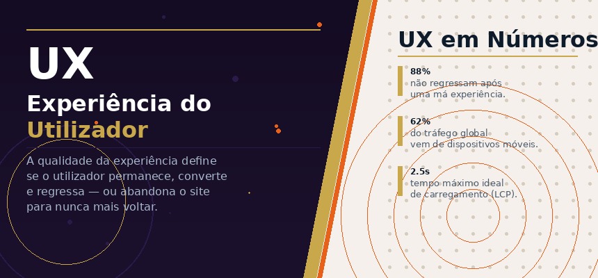 A experiência do utilizador engloba o conjunto de perceções e respostas que um indivíduo experiencia ao interagir com um produto ou serviço digital. No contexto de um website, a UX compreende aspetos como a facilidade de navegação, a legibilidade dos conteúdos, a velocidade de carregamento das páginas e a adaptação ao dispositivo móvel fatores que determinam se o utilizador permanece ou abandona o site.